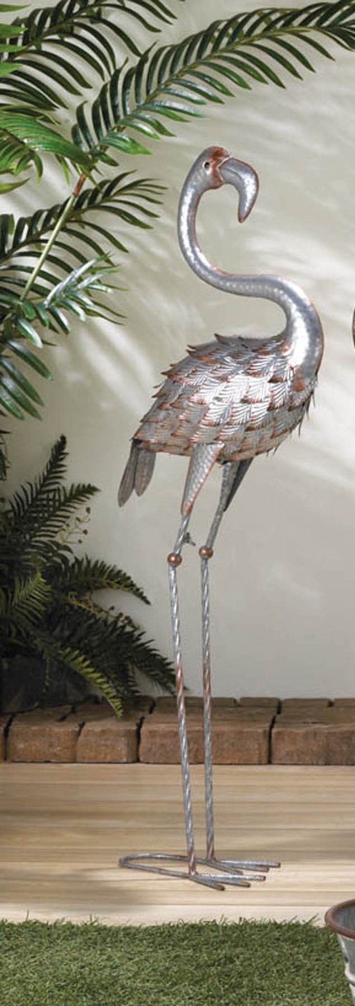 STANDING TALL GALVANIZED FLAMINGO STATUE STANDING TALL GALVANIZED FLAMINGO STATUE