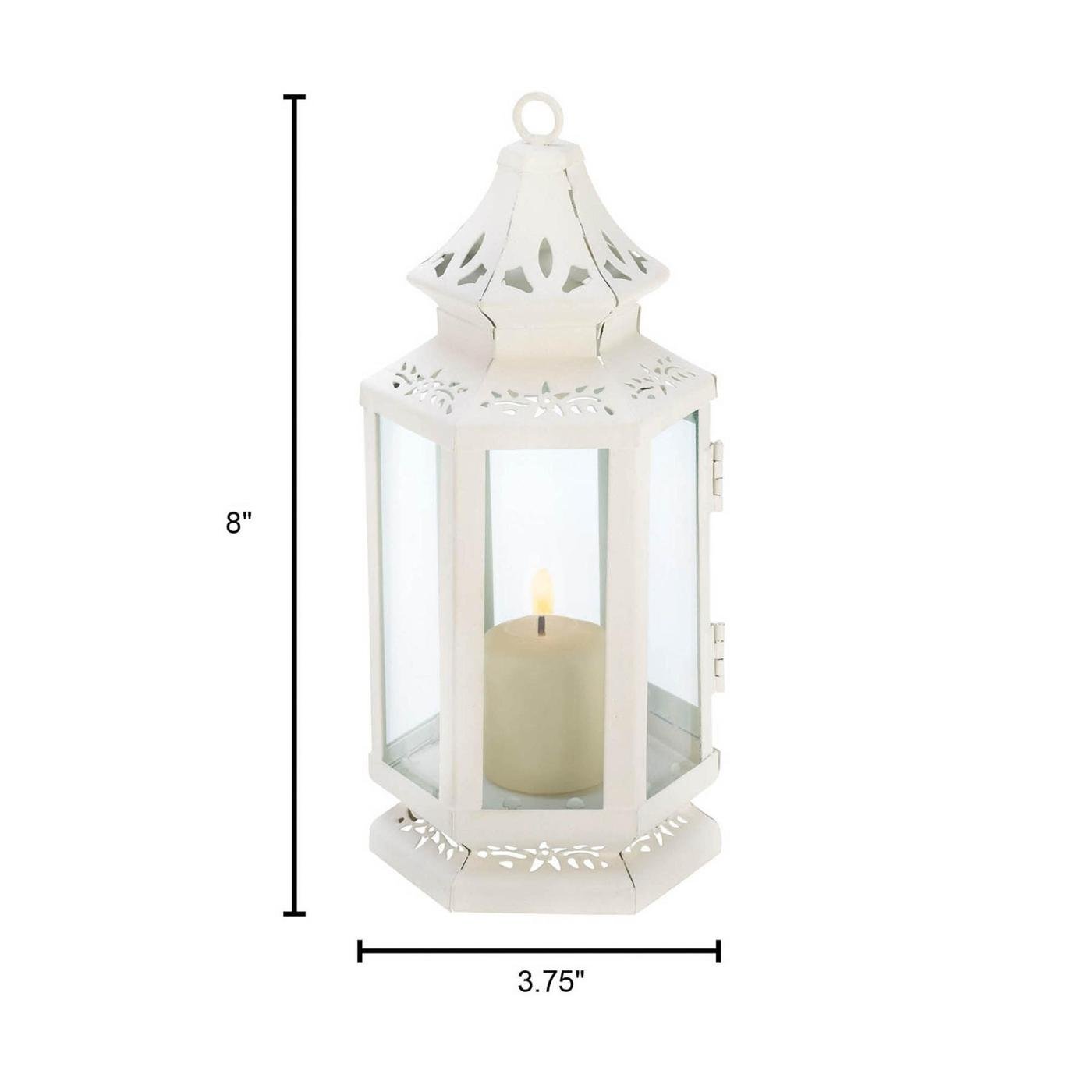• Made from durable iron and glass with decorative cutouts to enhance the candle's flickering light